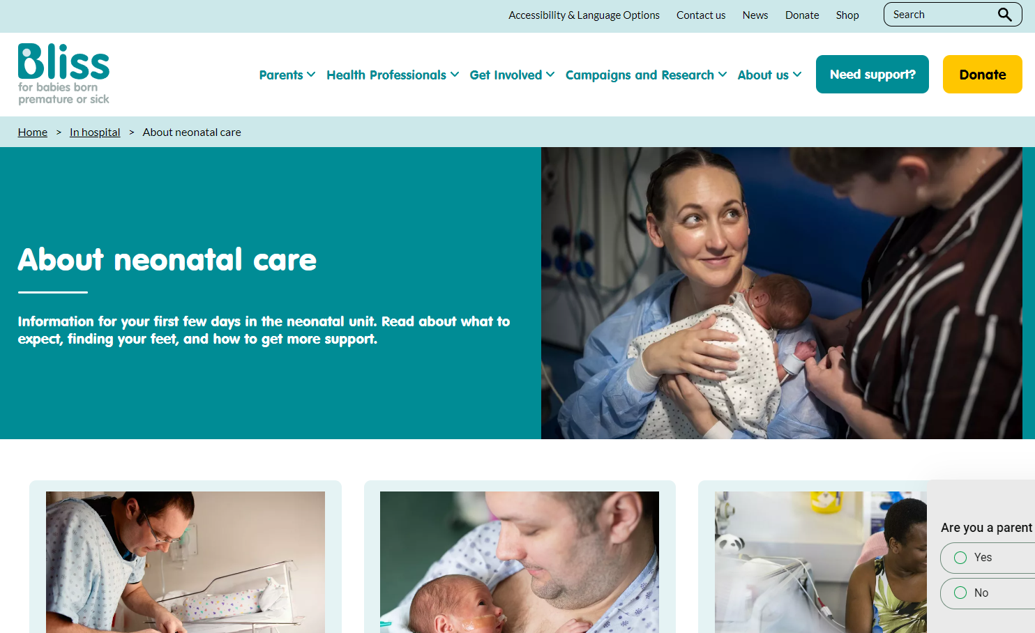 Having a premature or sick baby in hospital can be incredibly distressing for families. Bliss has been by parents’ side, supporting them through every step of their baby’s neonatal journey since they were founded - https://www.bliss.org.uk/parents/in-hospital/about-neonatal-care